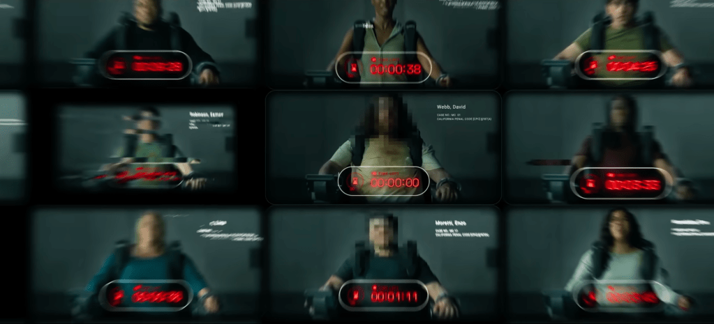 Most of the drama comes from conversations with Judge Maddox and from how Chris navigates the digital reconstructions, timelines, and probability assessments rather than through physical action. That limitation is also part of the point of the film. It hamstrings Chris’s investigation, making it impossible for him to conduct the investigation in a normal way that would have allowed him the time and flexibility to pursue leads and follow hunches that could turn up information that isn’t data in the AI’s system. Instead, as a defendant, Chris is completely at the mercy of a system designed to be all-seeing and all-knowing, and it’s only because of Chris’ vast experience in law enforcement that he is able to identify and compensate for the limitations of the AI. That kind of makes you wonder what hope the other defendants had in proving their innocence before being found guilty, and all of them were found guilty … which means all of them were executed. The setup really reinforces the core idea that this AI is not only flawed but that it also holds absolute power.