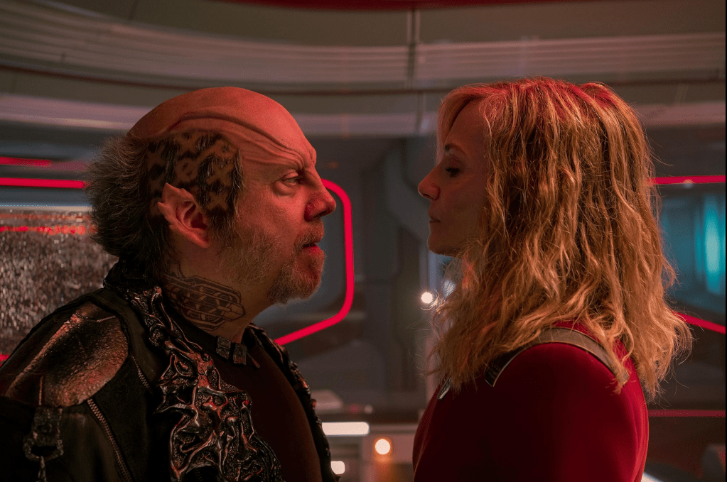 I was initially annoyed by Lura Thok, the Klingon–Jem’Hadar hybrid, because she felt like she was overacting in episode one and I mean in a big was as if she were compensating for all of the costuming and makeup she had to wear. In the following episodes, she leans more into her Klingon nature, which ends up being both funny and believable for the character.