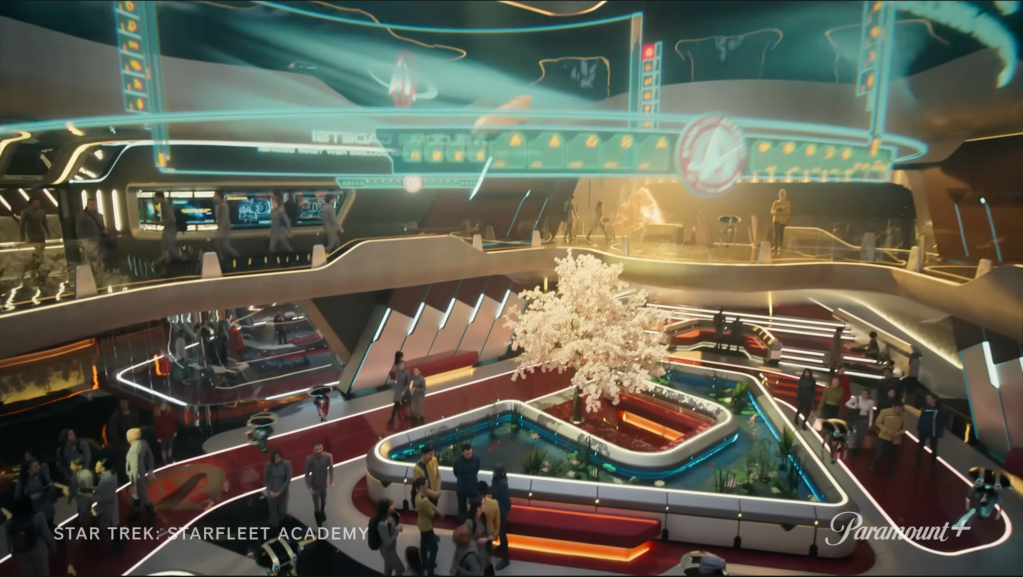 What they do get right is the technology and design. Visually, both the Athena and the land-based Starfleet Academy work really well. The mix of physical production sets and digital effects creates a campus that feels like a futuristic academic setting. The Athena’s sleek, open layout with glass walls and shared spaces actually does feel like a modern research university transported into the Star Trek universe.